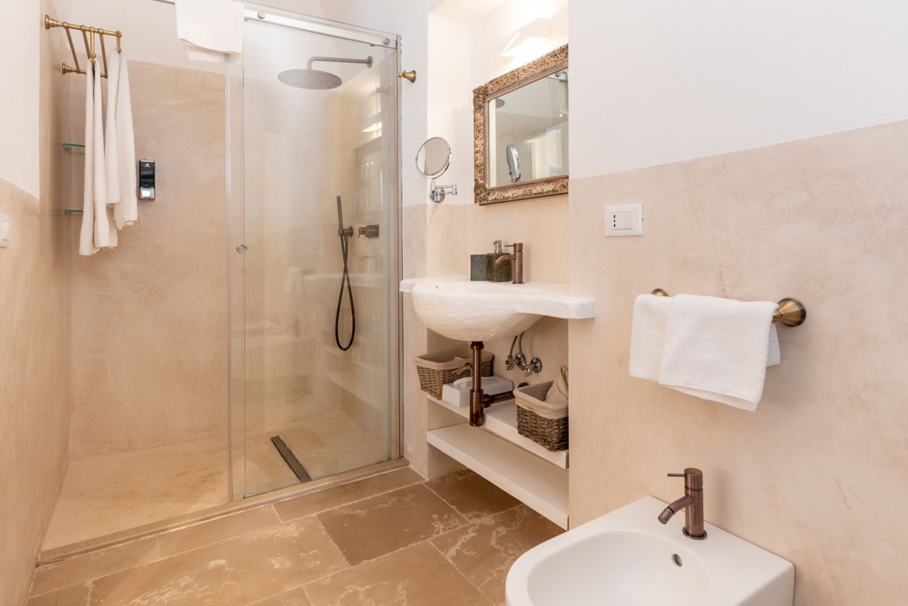 La camera, ricavata dalla roccia, presenta delle tipiche volte in pietra ed è composta da una camera da letto matrimoniale, un bagno privato con doccia ed uno spazio esterno in cui potersi rilassare.