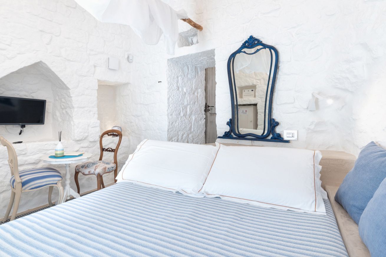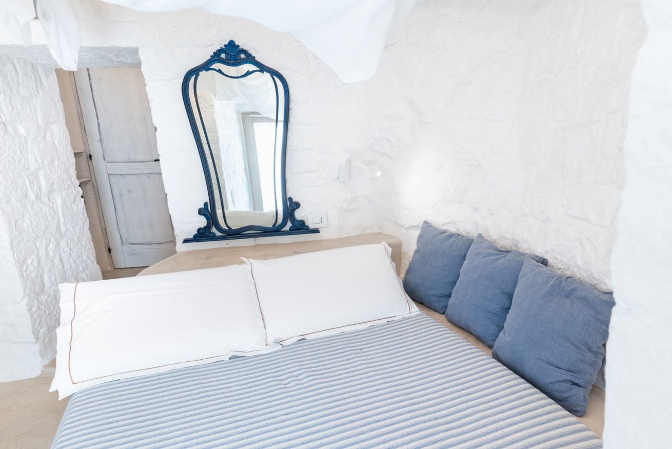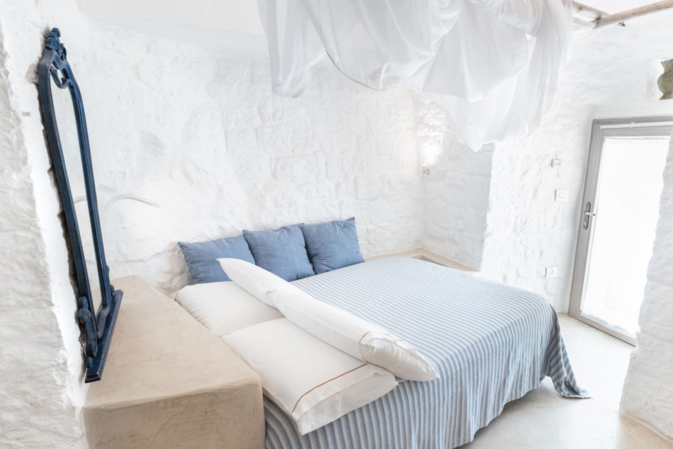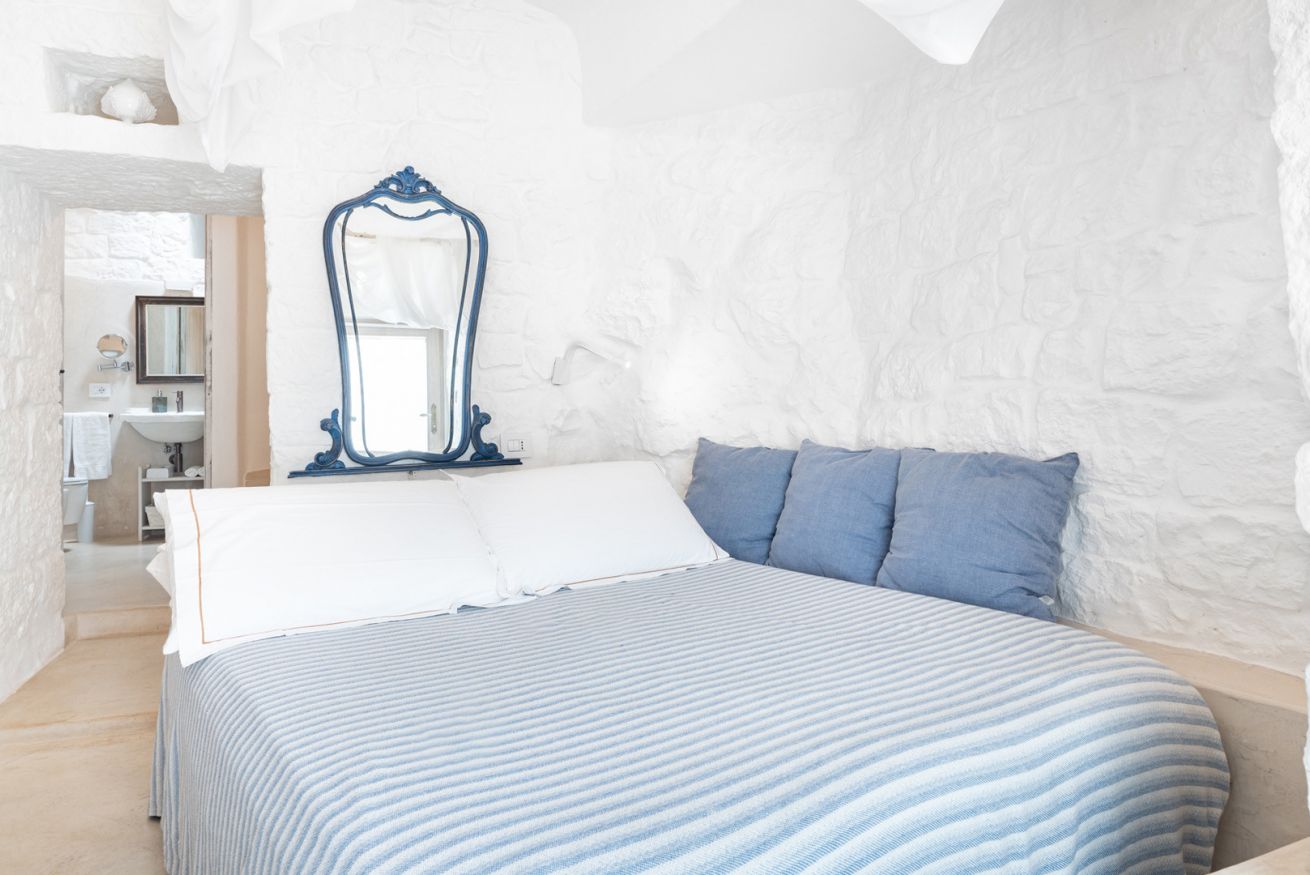 Suite matrimoniale con letto a baldacchino, un tavolino e due poltroncine, bagno dotato di doccia scavato nella roccia. Alla sua estensione di 20 m² circa si aggiunge una pertinenza esterna arredata con gazebo, divano e tavolini. Questa suite ha inoltre a disposizione un’area riservata a bordo piscina con ombrellone, due sdraio, tavolino, due teli e un cestino in cui poterli riporre a fine giornata in modo tale che vengano sostituiti.
